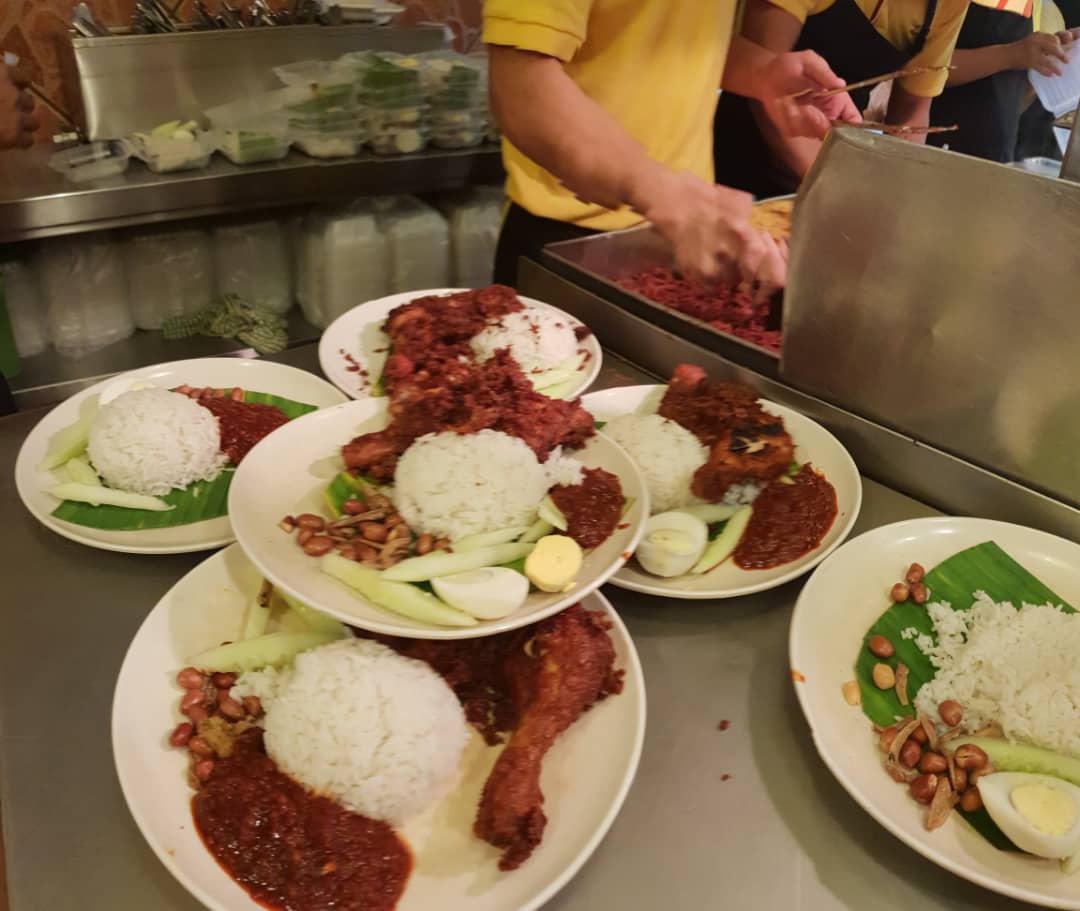 Nasi lemak ayam goreng , nasi dagang ikan, kangkong etc